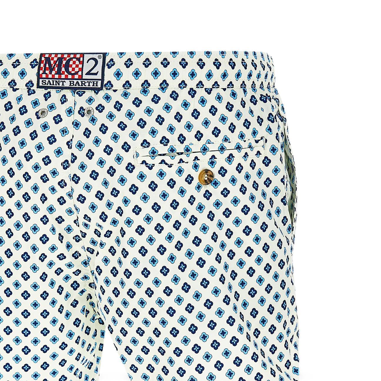 Tessuto elasticizzato meccanicamente<BR/>Vestibilità rilassataTasche laterali a filo<BR/>Tasca posteriore destra con chiusura in velcro<BR/>Ricamo esclusivo MC2 Saint Barth sull'orlo sinistro<BR/>Etichetta MC2 Saint Barth sul retro Slip interno in rete per un maggiore supporto La taglia L ha una mezza vita di 55 cm, una lunghezza totale di 42,5 cm (inclusa la cintura) e un'ampiezza del fondo gamba di 31,5 cm