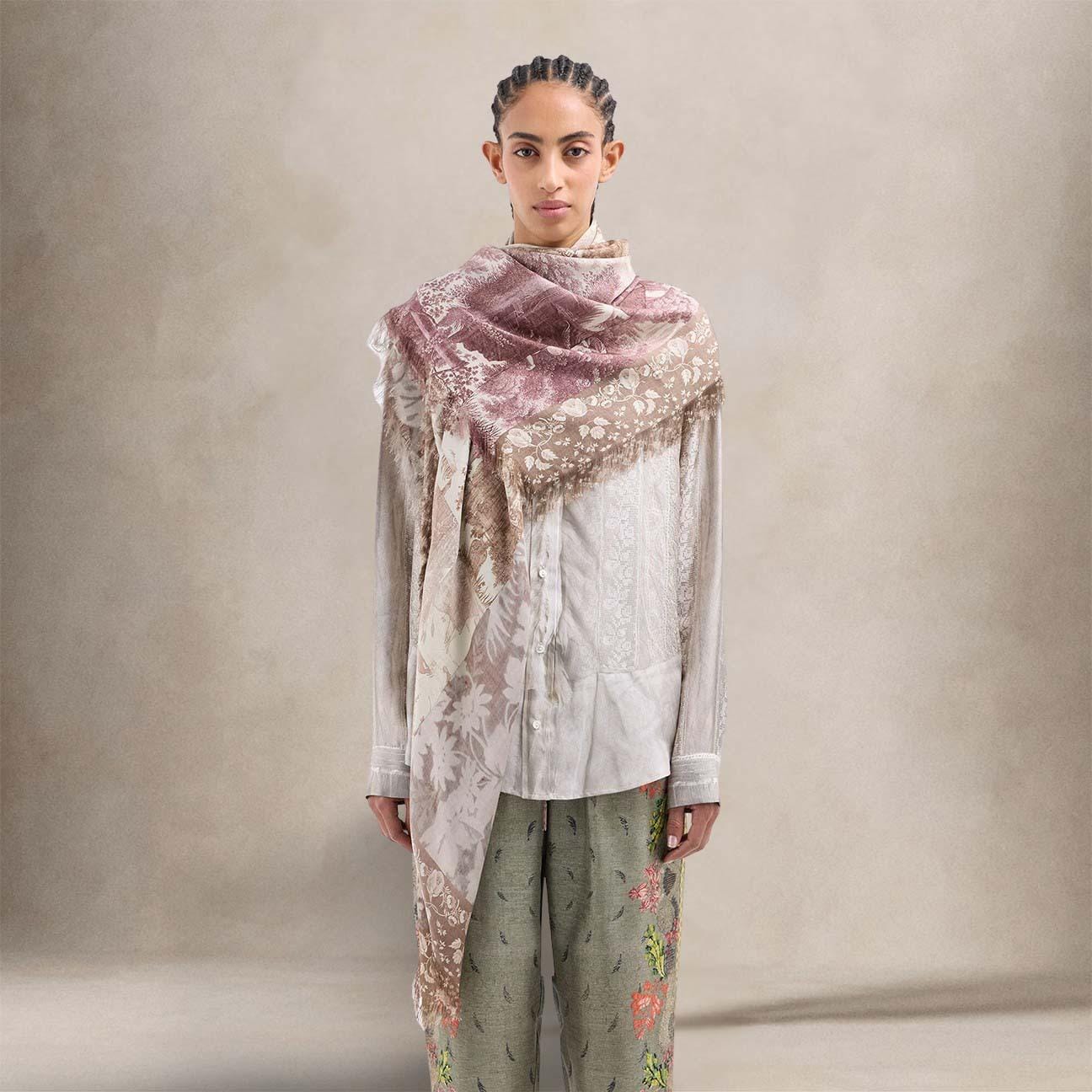Questa stola in seta stampata 135x195 cm rivela un affresco di scene bucoliche nei toni del seppia, che evocano un senso di eleganza senza tempo. La narrazione minuziosa e i delicati profili sfrangiati aggiungono un fascino poetico. Appoggiala su un cappotto sartoriale Appoggiala su un cappotto sartoriale oppure stringila in vita per un gesto di stile sofisticato e artistico.