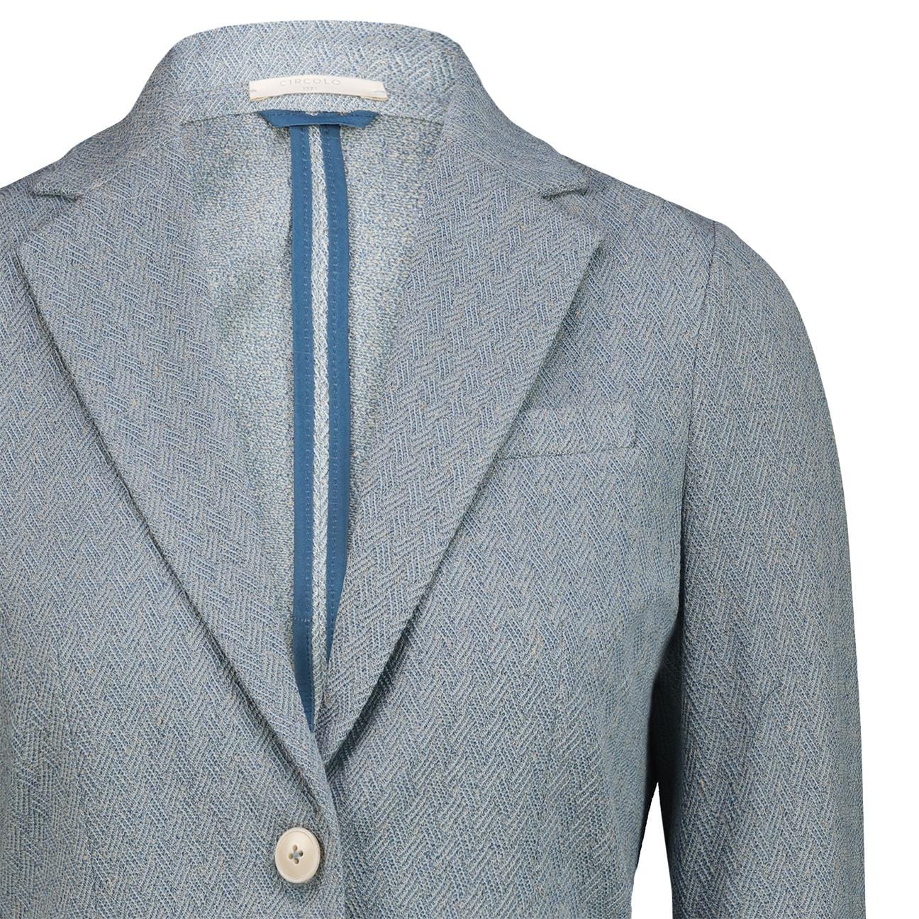 Esplora nuovi orizzonti con la giacca in un elegante tessuto jersey stretch. Il design monopetto e l'azzurro polvere lo rendono perfetto per un look sofisticato e di tendenza. Aggiungi un tocco di lusso alla tua collezione di giacche.