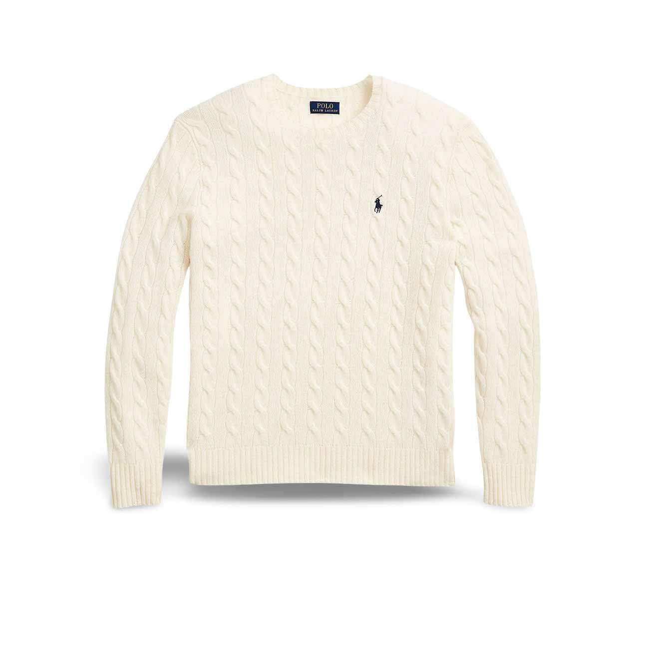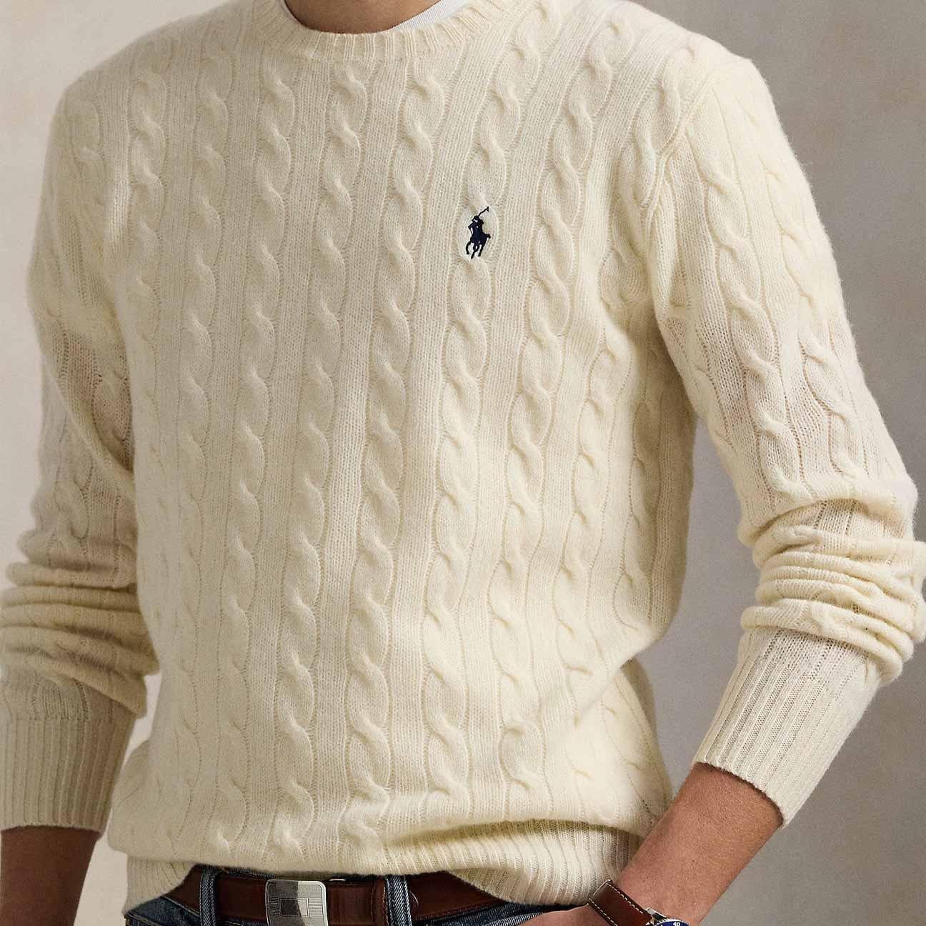 POLO RALPH LAUREN Maglia uomo con trecce in lana e cashmere Panna