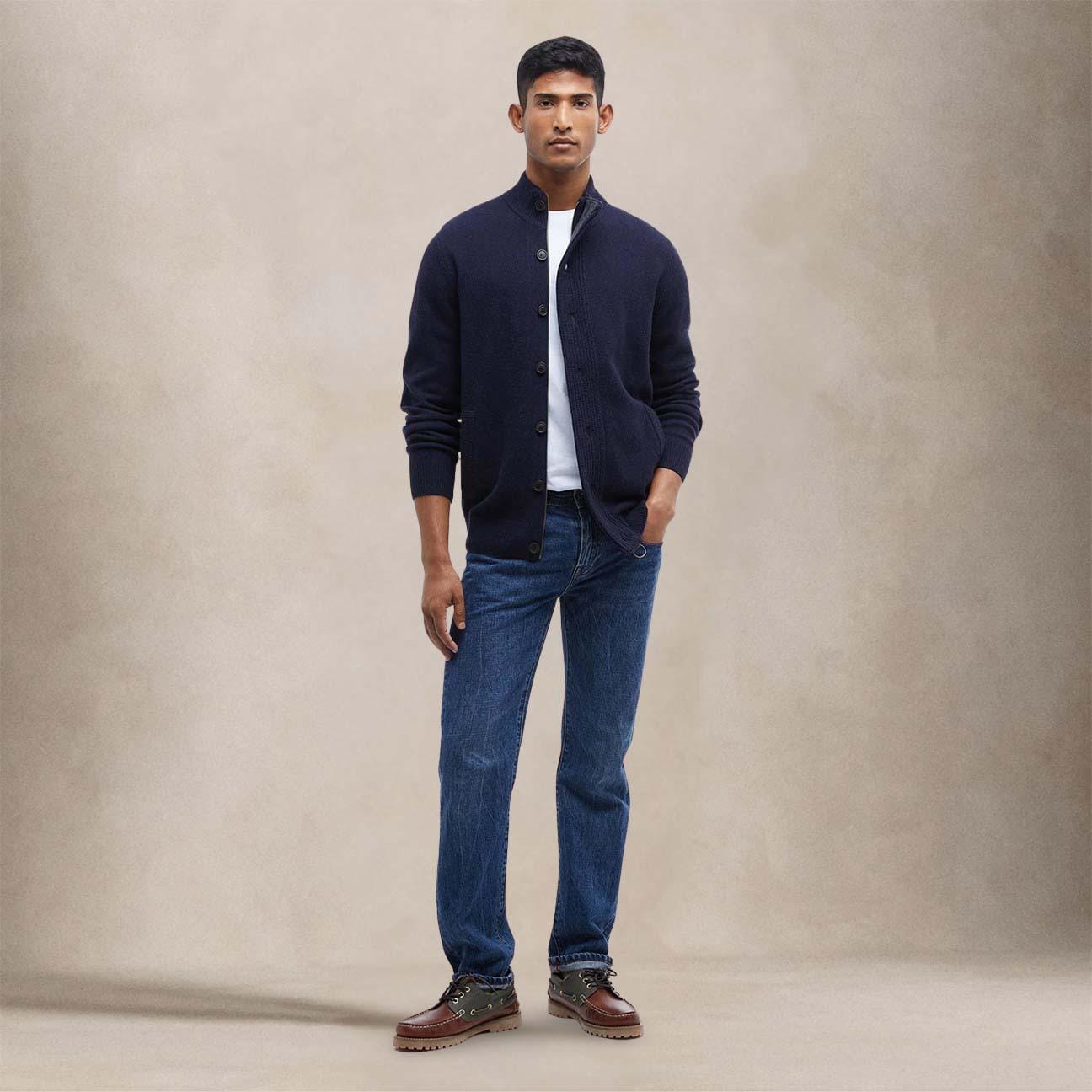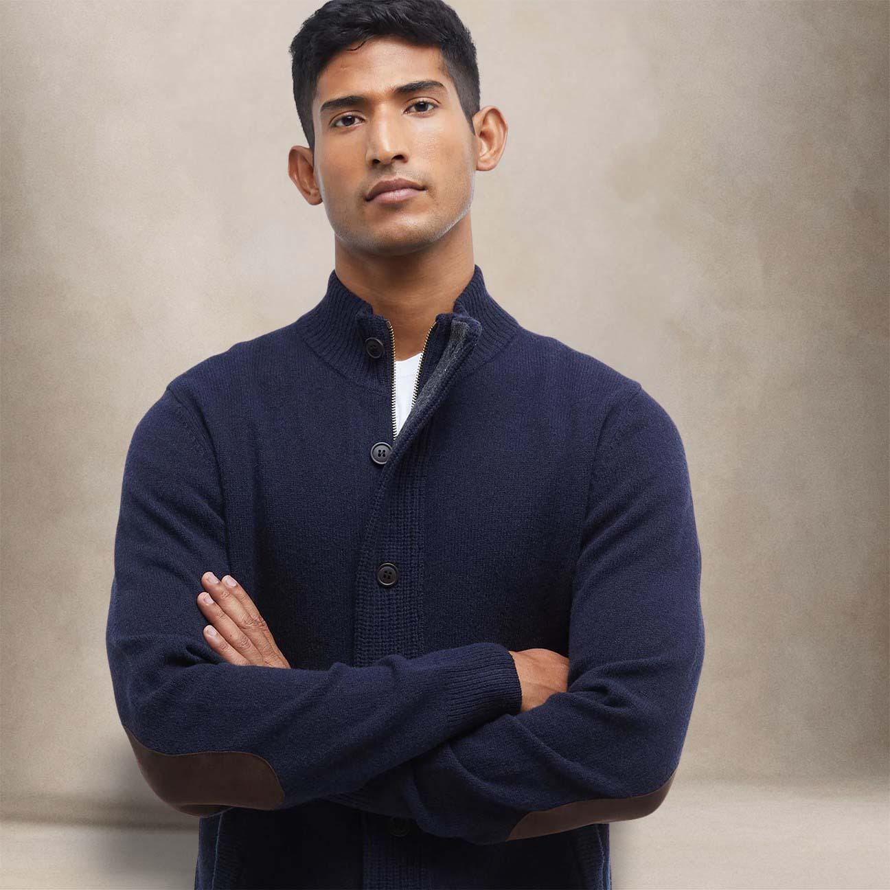 Vestibilità regular Fit collo ad imbuto chiuso con bottoni e zip due tasche laterali toppe sui gomiti in alcantara