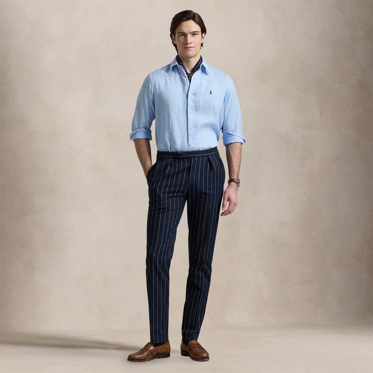 Vestibilità Custom-Fit: una silhouette sagomata, a metà tra i modelli Classic-Fit e Slim-Fit. Taglio sagomato in vita. La taglia M ha una lunghezza di 80 cm sul retro, spalla di 46,4 cm, torace di 111,8 cm e maniche di 87,6 cm. La lunghezza della manica è misurata a partire dal centro della nuca.<BR/>Collo button-down. Cannoncino con bottoni.<BR/>Maniche lunghe con polsini con bottoni.