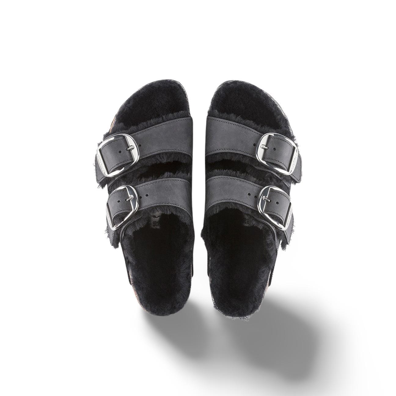 Das Modell Arizona ist ein echter Klassiker, der seit Jahrzehnten Männer und Frauen mit seinem zeitlosen Design begeistert. Diese Variante zeigt sich in einer besonders weichen und warmen Variante mit einer auf die mit Lammfell überzogenen Riemen im unteren Bereich abgestimmten Lammfelldecksohle und großen, eleganten Schnallen.