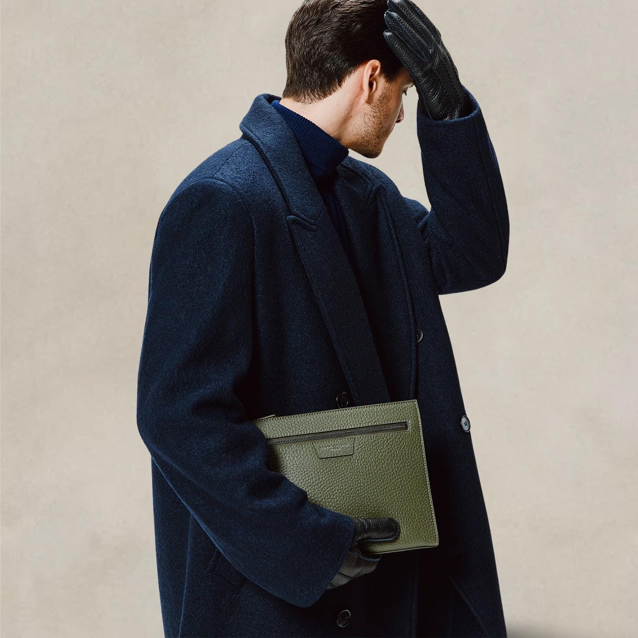 Herren-Clutch aus olivgrünem Leder