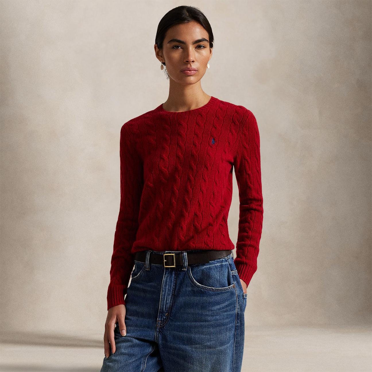 Maglia donna girocollo in lana e cashmere Rosso
