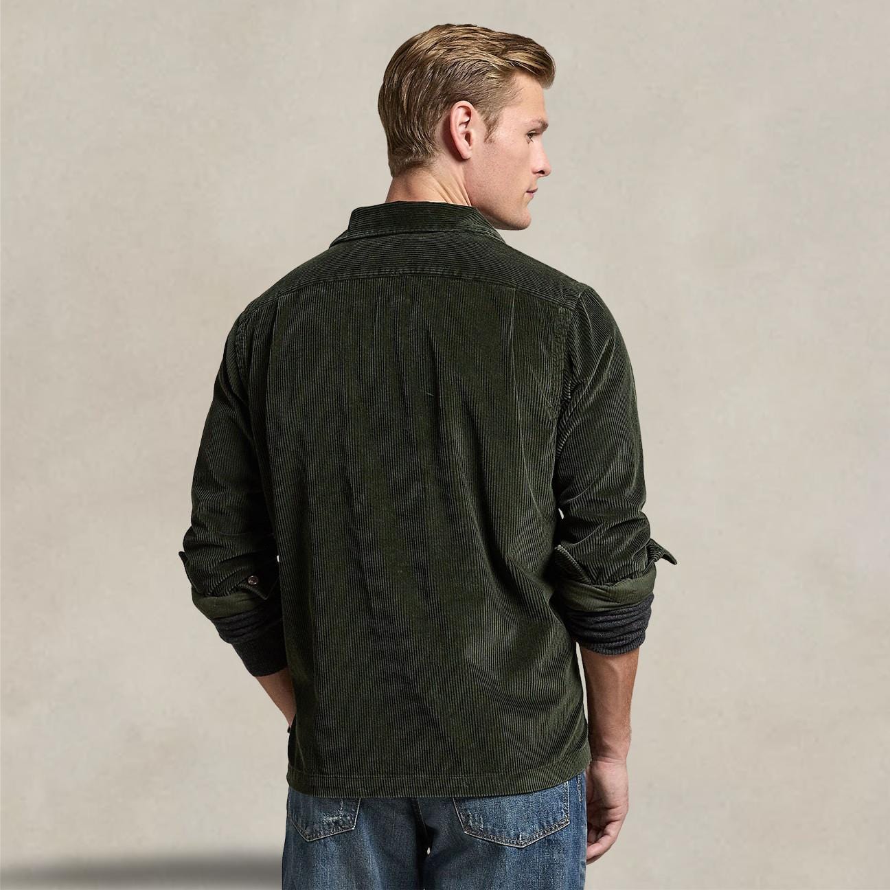 Arbeitshemd für Herren aus olivfarbenem Samt