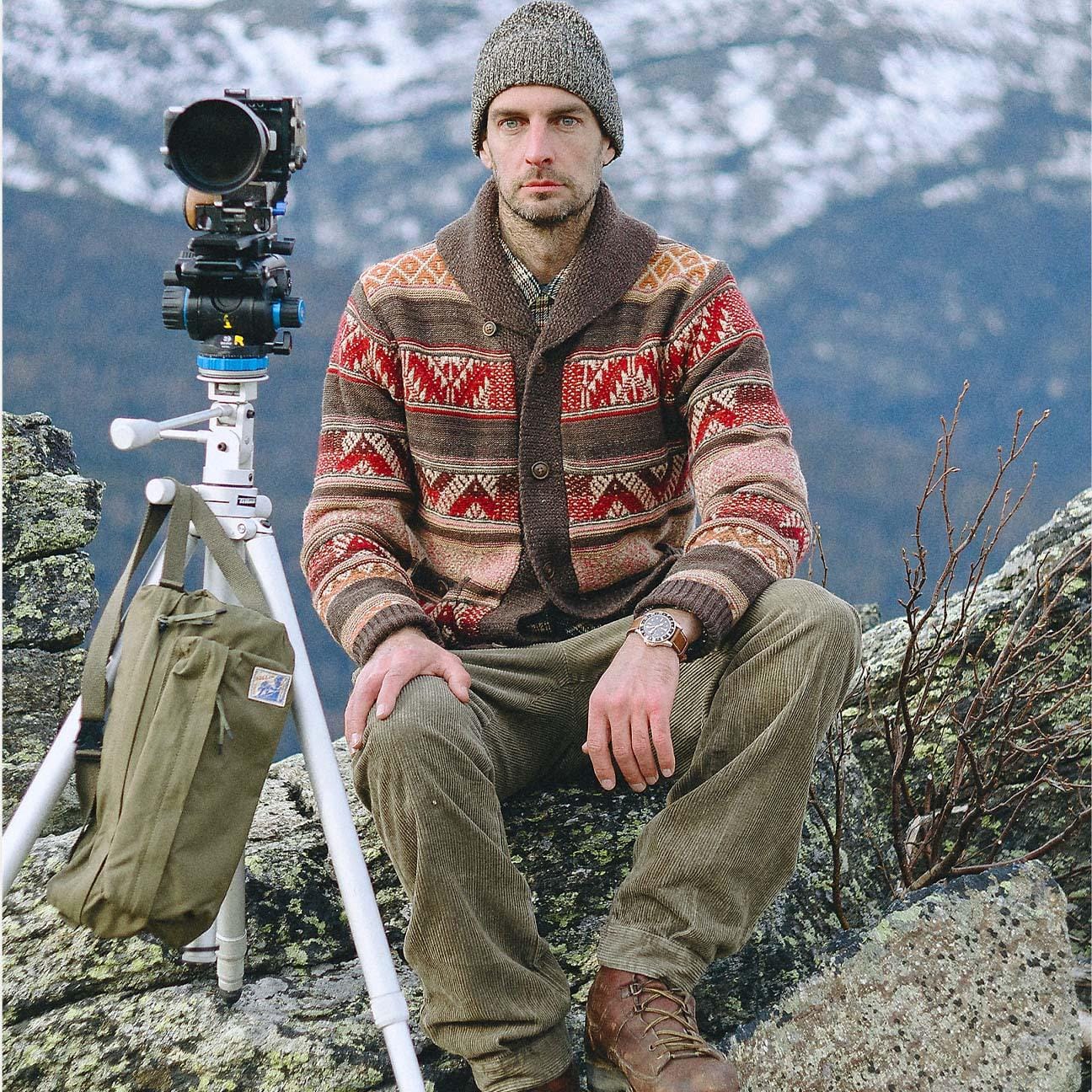 Cardigan con collo a scialle realizzato con filati di lana, lino e seta di gelso. Ispirato a una coperta degli anni '60. Lavorato a maglia con una varietà di cuciture e dettagli a zigzag sul collo e sulla chiusura. Polsini e orlo a coste. Bottoni in vero corno.