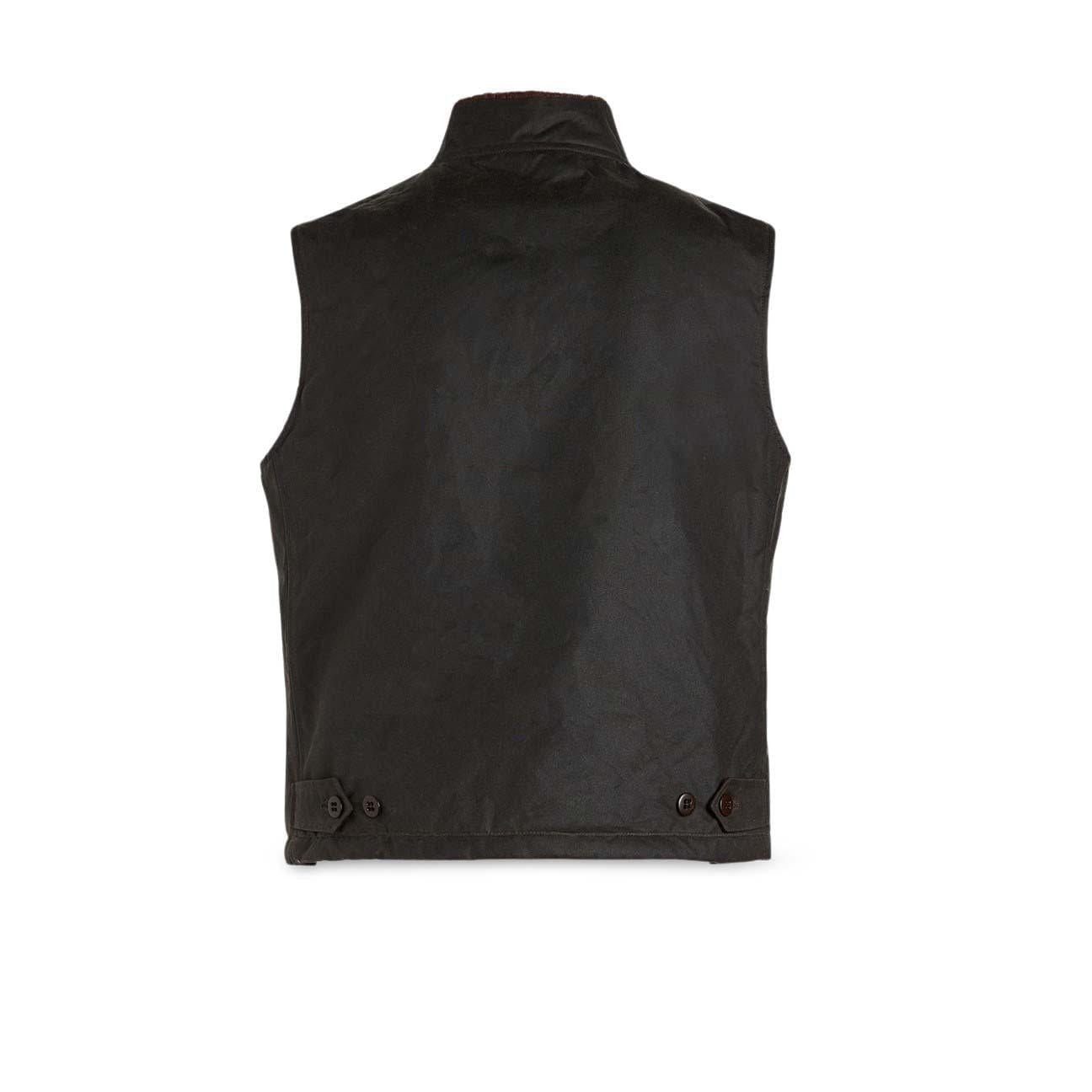 Gilet realizzato in tessuto paraffinato idrorepellente è imbottito nel corpo di ovatta di lana, proveniente da pecore allevate in Italia.