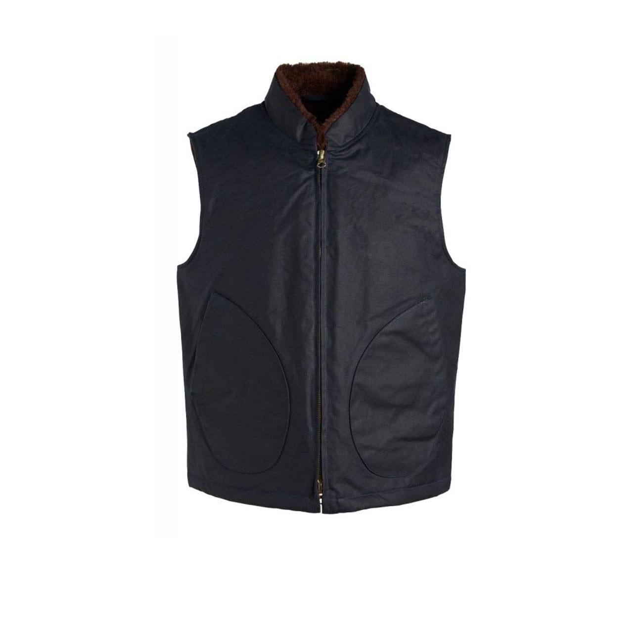 the vest made of water-repellent paraffin fabric is padded in the body with wool wadding, coming from sheep raised in Italy.