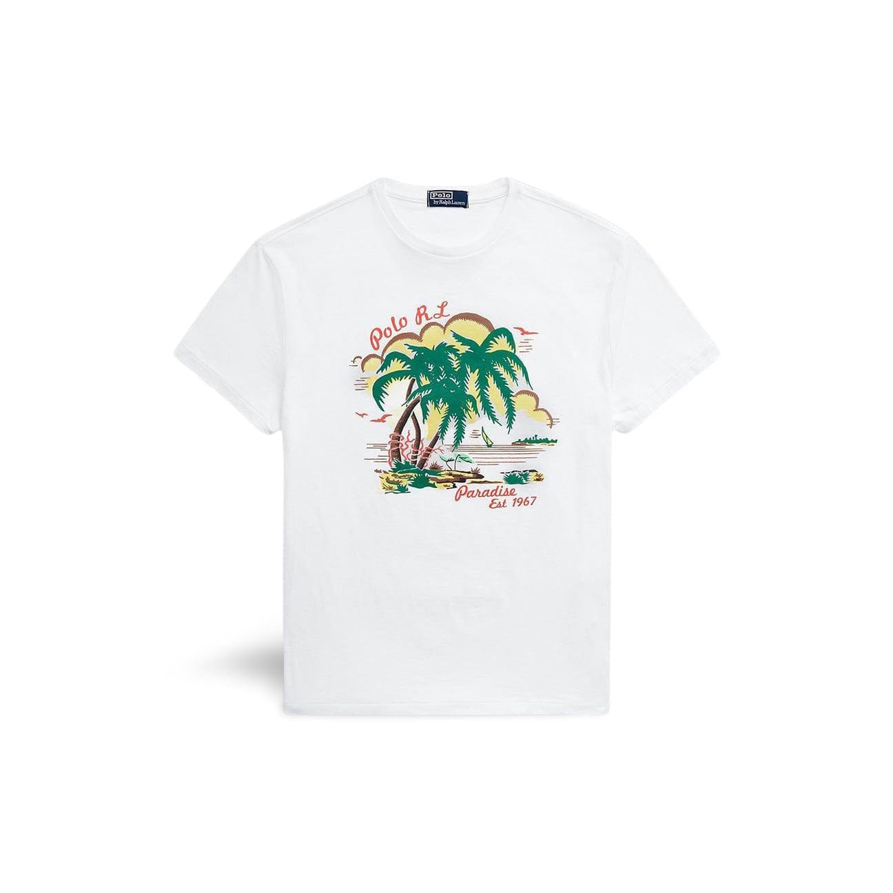 Irregular cotton jersey T-Shirt features a "Polo RL" logo, a palm tree graphic and the words "Paradise Est. 1967" printed on the front in reference to the year Polo Ralph Lauren was founded.