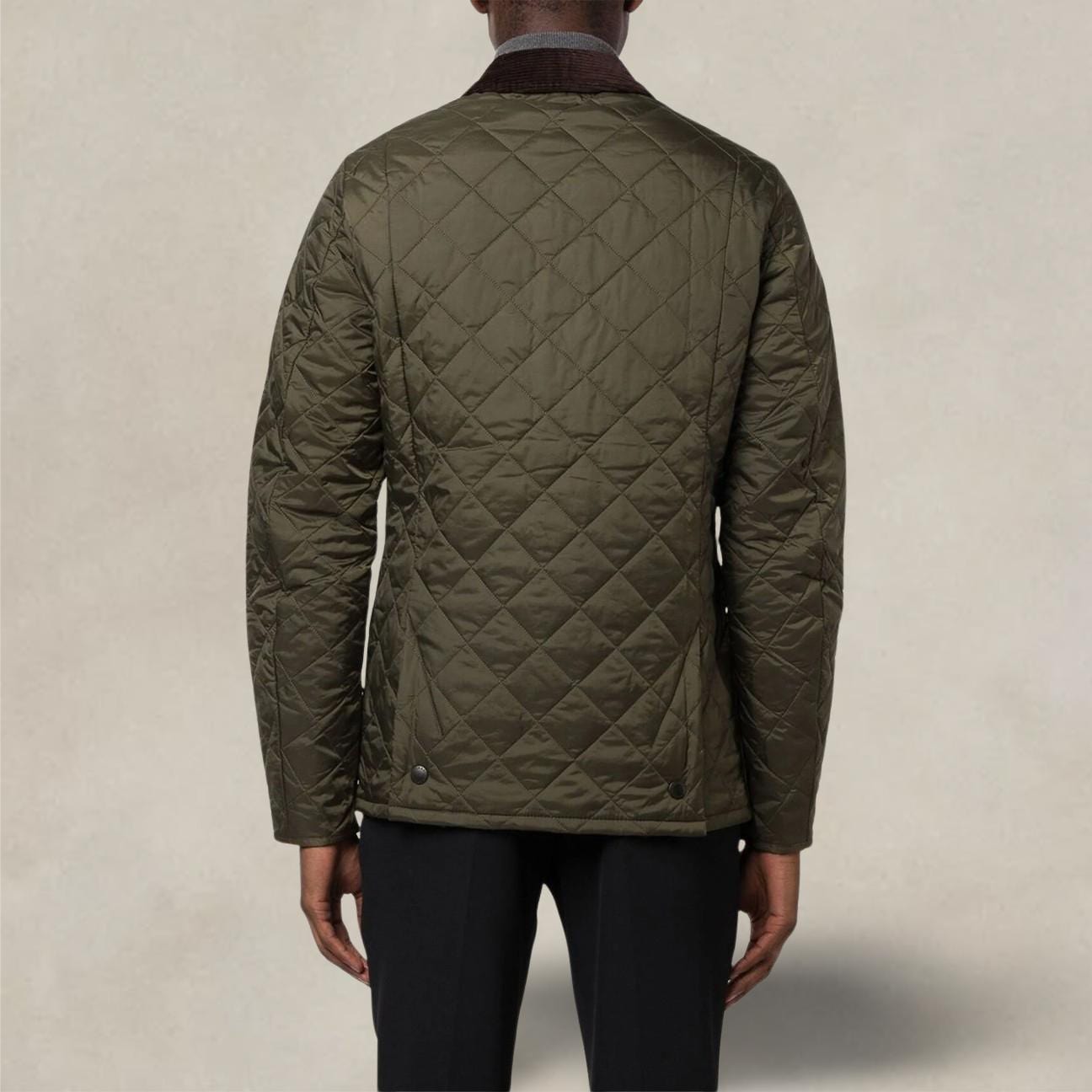 With Barbour's signature diamond quilted exterior and a warm yet lightweight contrast nylon lining, this popular men's quilted jacket is durable, simple and stylish. From the Classic collection and available in a range of colours, it features a sturdy front closure with metal buttons for effective protection from the elements and a stylish corduroy collar that can be turned up for added warmth and protection, with a luxuriously soft feel on the skin.