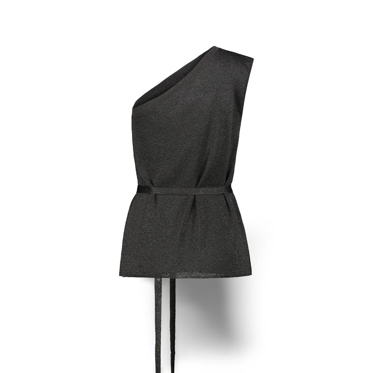 Let yourself be enchanted with a one-shoulder lurex top. Add a touch of elegance with the bright and unique lurex details. An aura of luxury and exclusivity accompanies your every move with this high fashion creation.