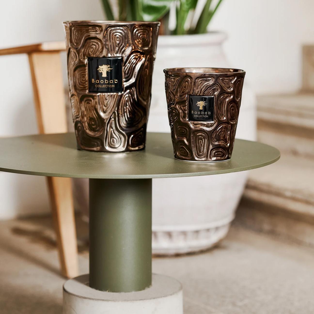 Sultan est le titre le plus important des monarques dans les territoires d'Afrique du Nord. La bougie parfumée Sultan présente un récipient en céramique recouvert d'un vernis métallique brillant qui donne aux motifs géométriques un aspect rigoureux et sculptural.