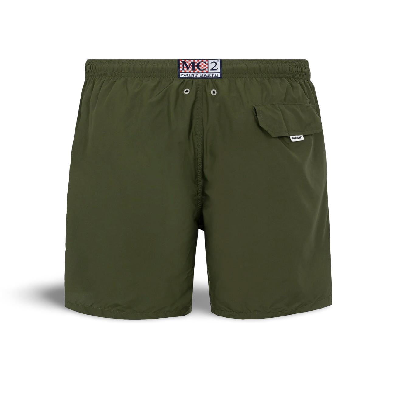 Vestibilità Classic Fit Tessuto leggero Asciugatura rapida Colore verde britannico in tinta unita Comoda vita elasticizzata Cordoncino regolabile blu navy con terminalini marchiati Fodera interna in rete Tasche laterali con cucitura alla francese Tasca posteriore applicata con chiusura magnetica con targhetta brandizzata Pantone Occhielli firmati progettati per drenare l'acqua e prevenire l'effetto palloncino Etichetta esclusiva MC2 Saint Barth sul retro La taglia L ha una larghezza della mezza vita di 52 cm (allungata) e varia di 2 cm per ogni taglia; lunghezza fianchi compresa la vita cm 41 e varia di 1 o 0,5 cm per ogni taglia, a seconda della taglia