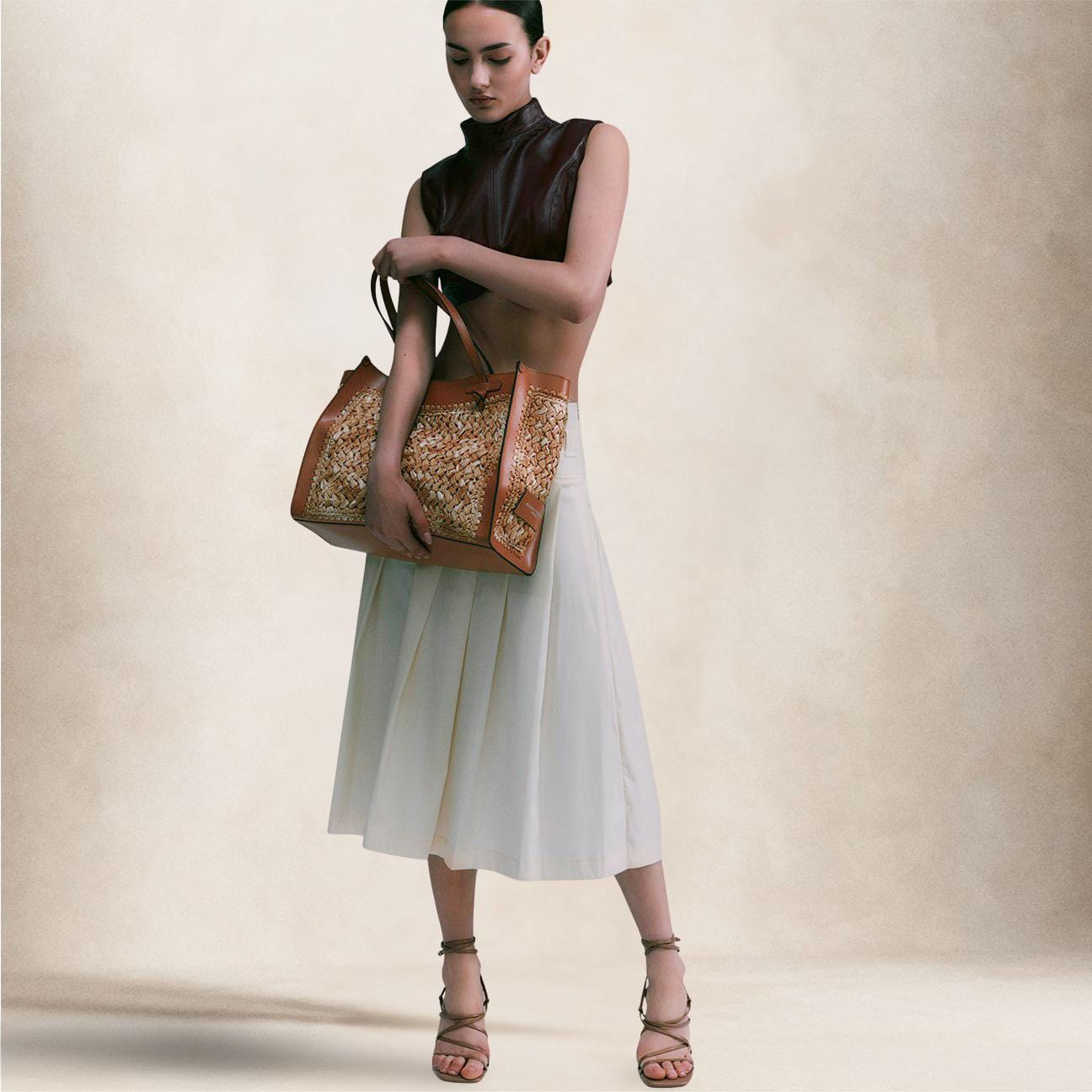 Sac à main femme Marcella en raphia et cuir New Cuoio