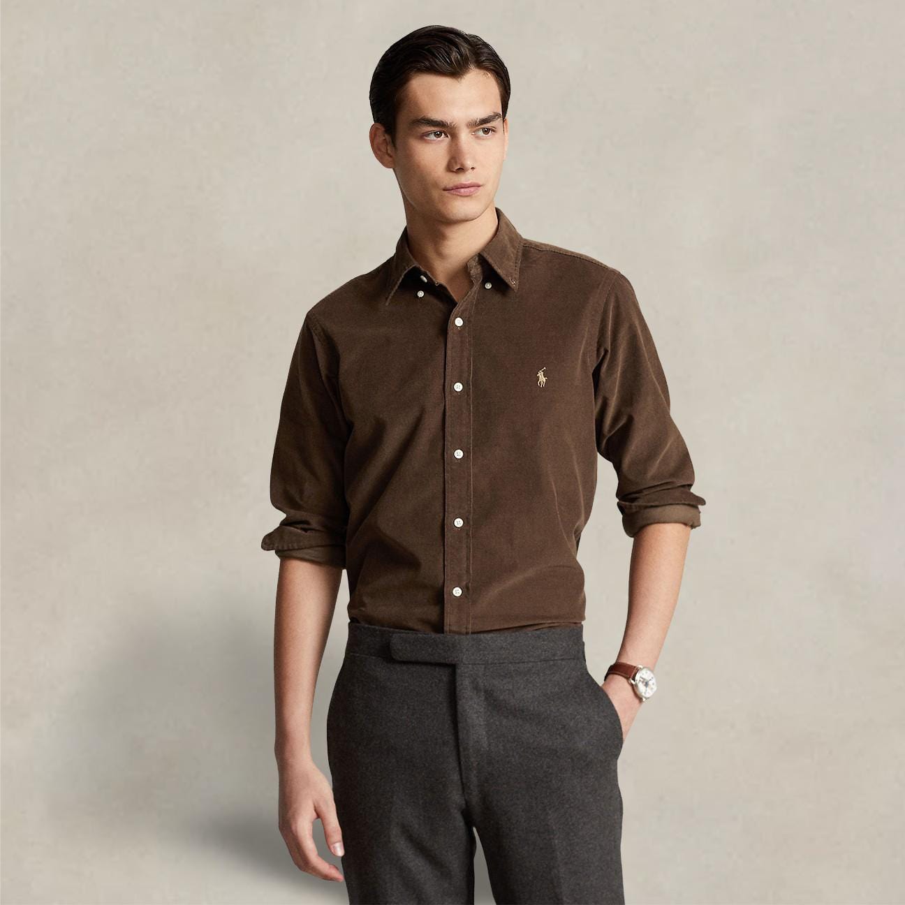 Un fin velours côtelé ajoute une note country à l'iconique chemise boutonnée, un grand classique intemporel.