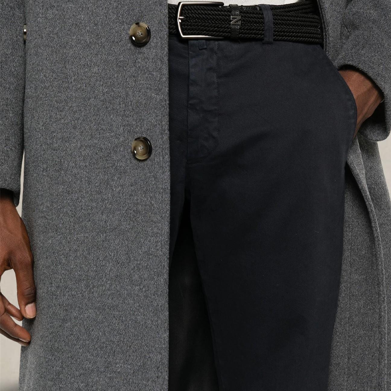 Confectionné en sergé de coton de haute qualité, il présente une coupe chino slim qui épouse parfaitement le corps et souligne le ventre plat. Confortable et sophistiqué, ce pantalon est parfait pour un look raffiné et moderne.