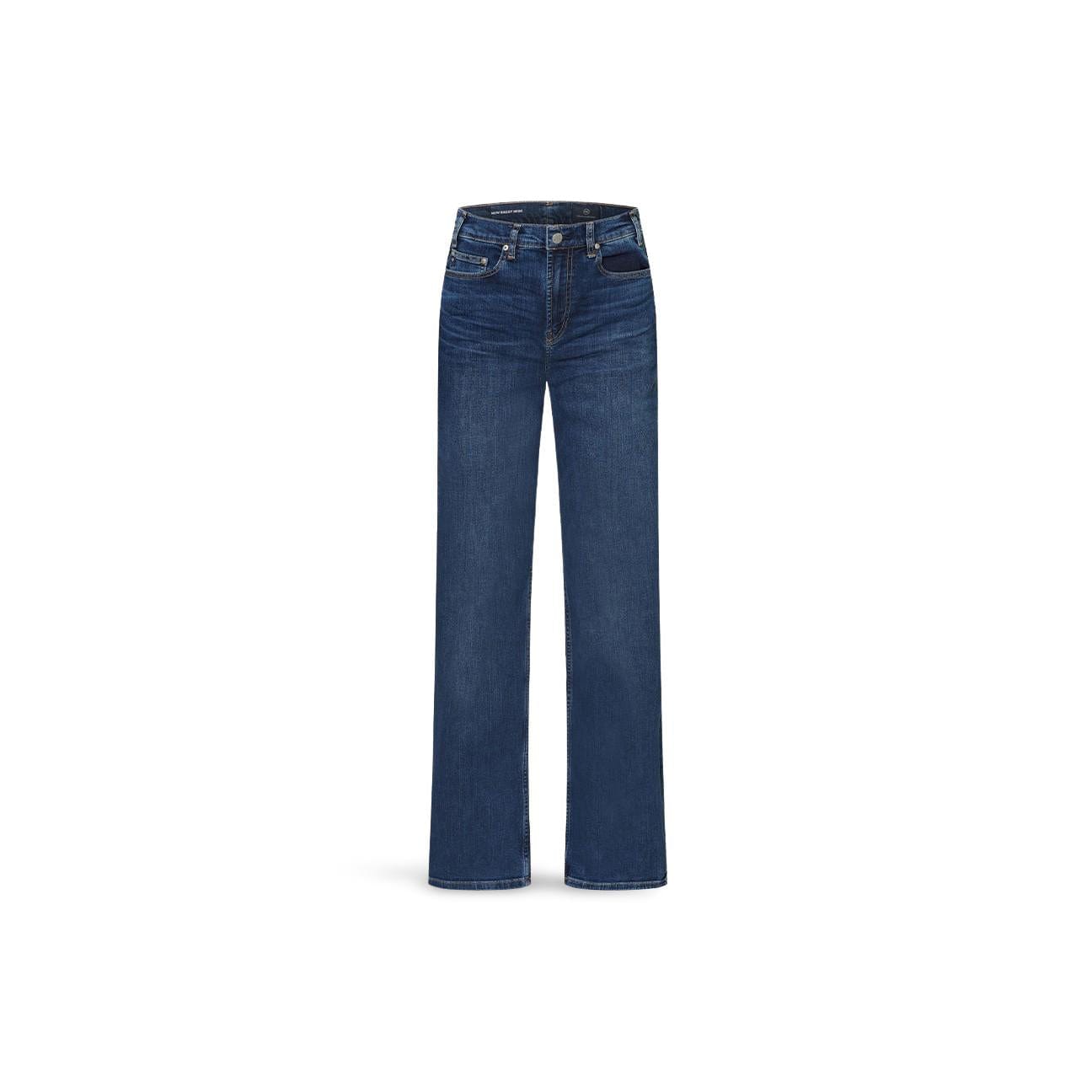 Vestibilità Loose Fit, vita alta, gamba larga, modello a cinque tasche, chiuso con zip e bottone