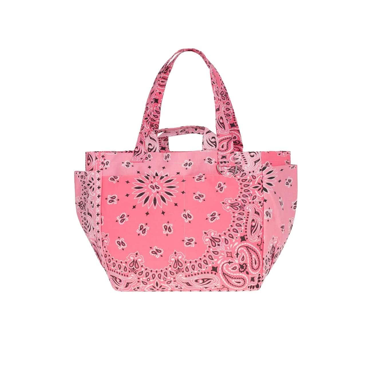 Borsa tote realizzata in tessuto con stampa bandana, caratterizzata da tonalità verdi a contrasto e da un'estetica ispirata al mondo utility. Il design patchwork dona profondità e un look distintivo, perfetto per uno stile casual contemporaneo.contemporaneo.le casual contemporaneo.