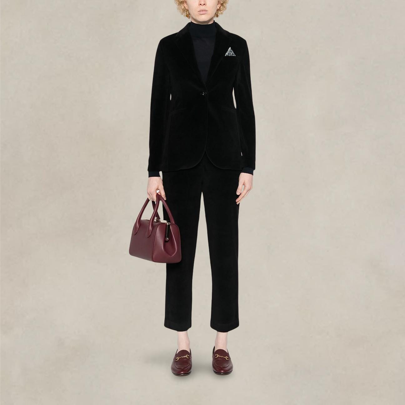 Elegante giacca slim fit in morbido velluto con chiusura a un bottone. Perfetta per un look sofisticato e di classe, ideale per eventi speciali e serate esclusive. Renditi unico e raffinato con questo modello di blazer