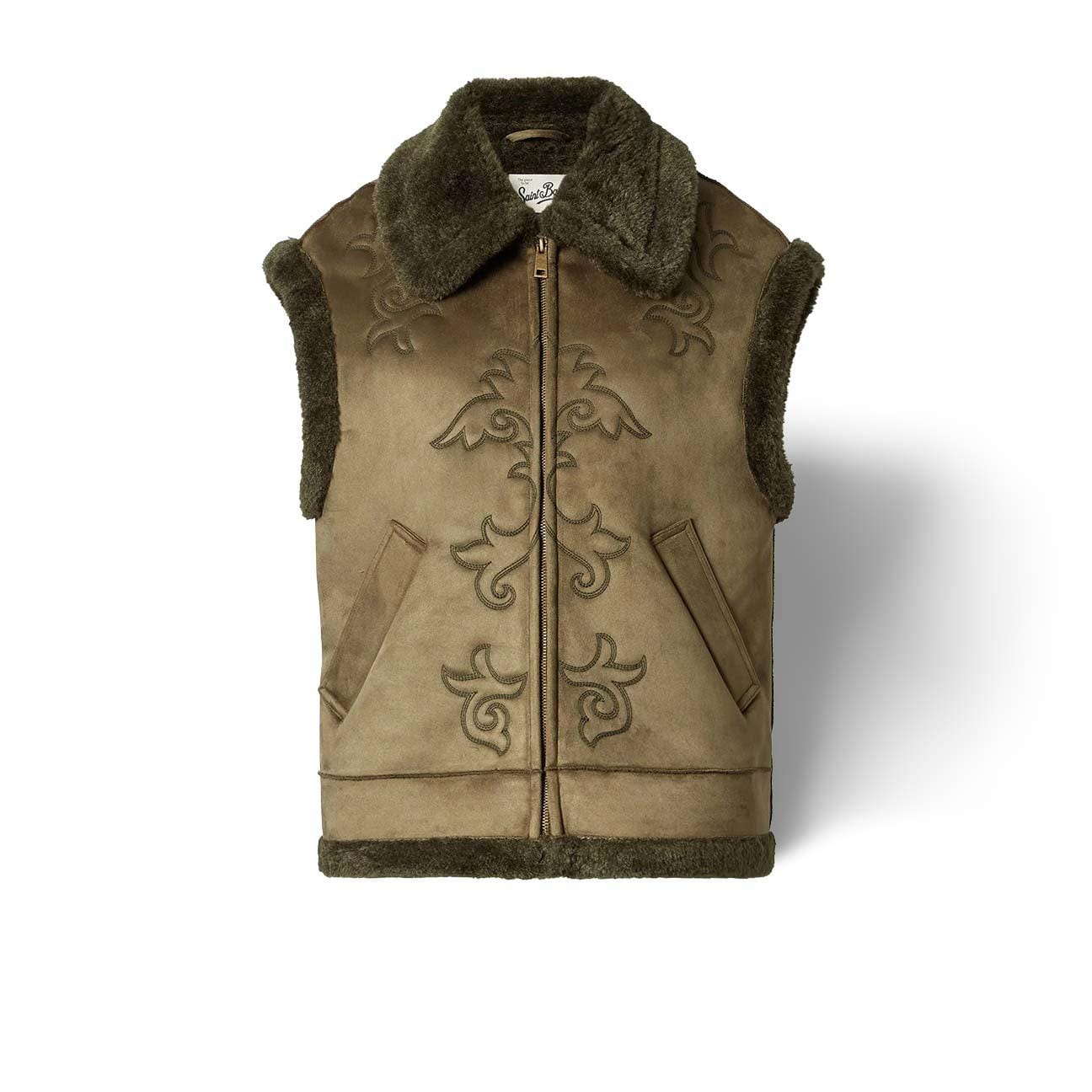 Gilet donna in ecomontone Verde Militare