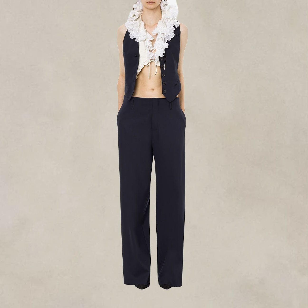 "Valorizza il tuo look con l'eleganza del gilet . Realizzato in lana stretch, con abbottonatura centrale e tessuto leggero, per un tocco sartoriale ispirato alla moda maschile. Aggiungi un tocco di classe al tuo stile.
