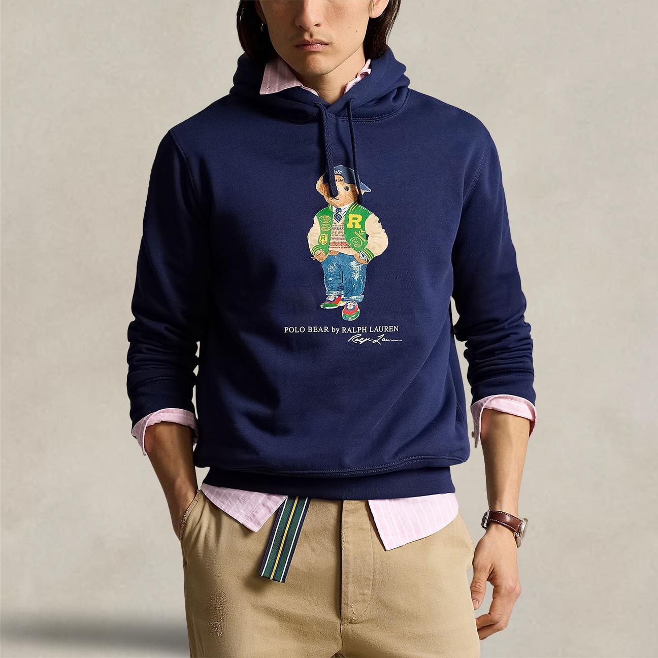 Vestibilità regolare, Cappuccio con coulisse. Maniche lunghe con polsini a coste. Due righe sulla manica sinistra.Polo Bear e scritte "Polo Bear by Ralph Lauren" e "Ralph Lauren" stampati al centro sul davanti.