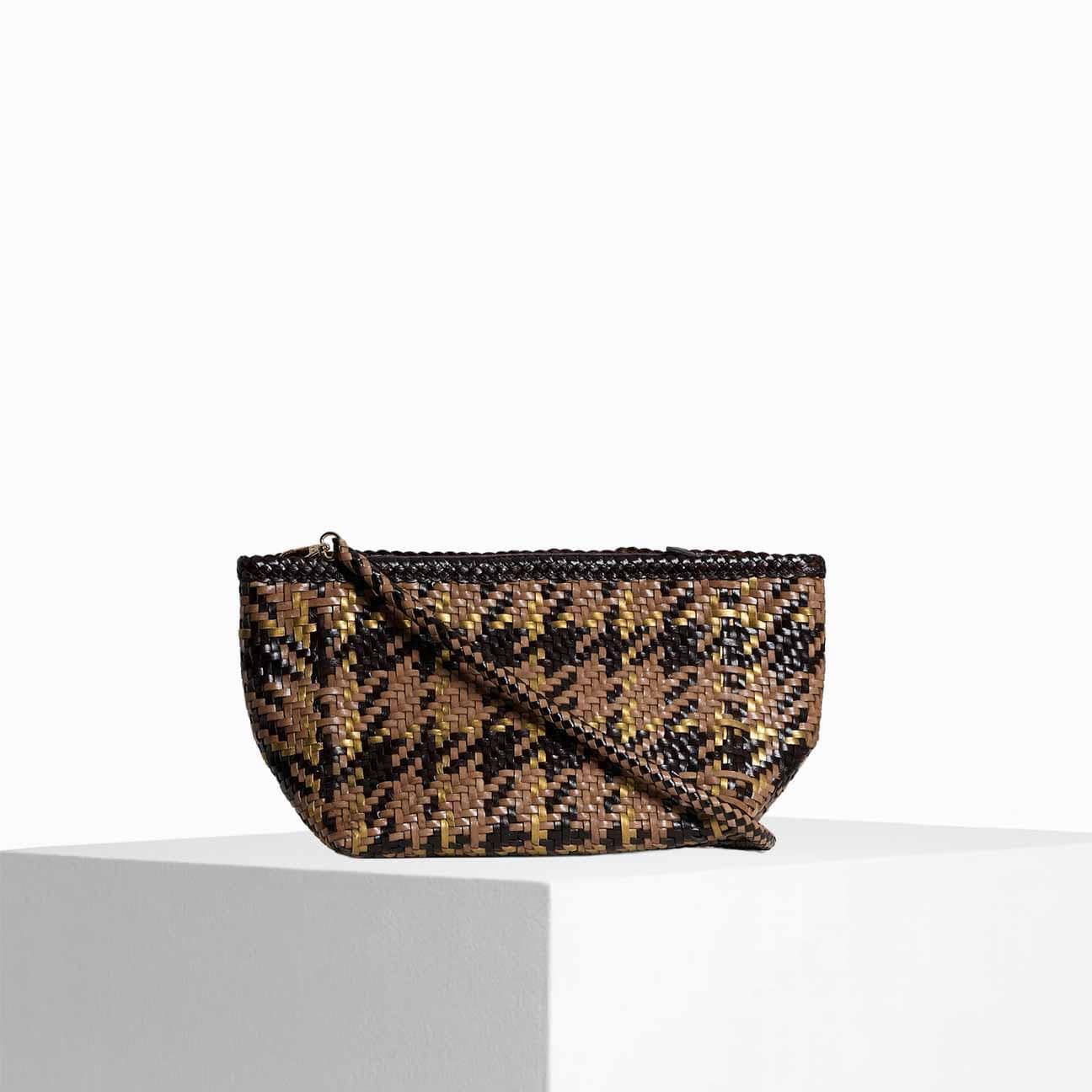 Pouch Mondrian Madras Taupe Chocolate Gold