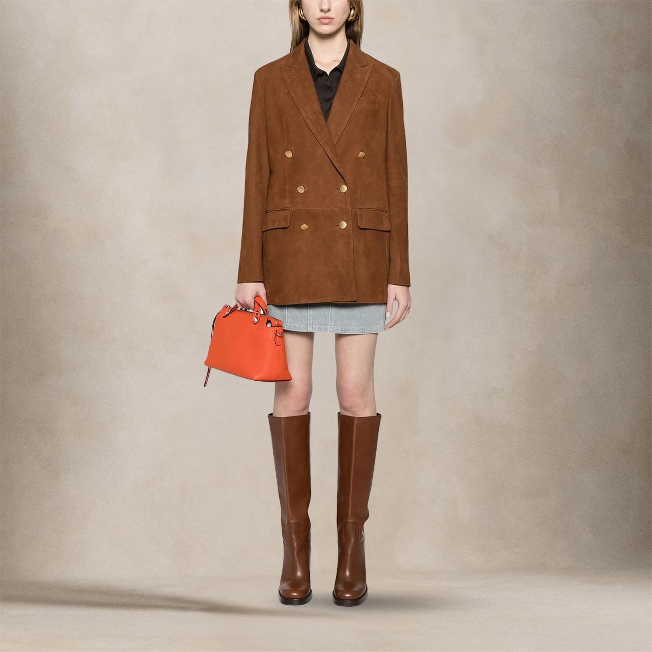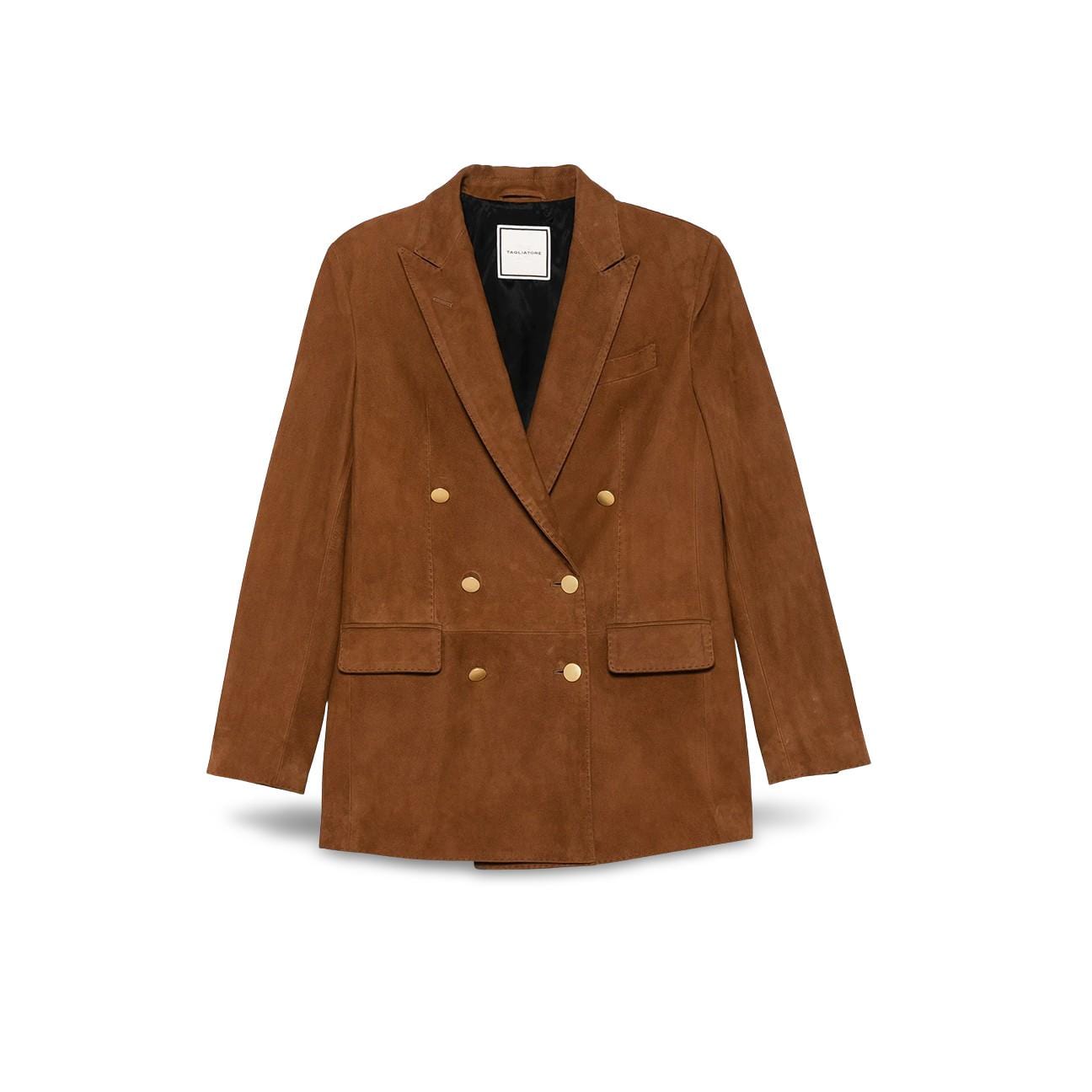 Scopri lo stile sofisticato della giacca realizzata in pelle scamosciata, doppiopetto e leggermente over, questo capo ti farà sentire elegante e lussuoso. Perfetto per un look esclusivo e mai banale, con un tocco di raffinatezza e stile senza precedenti.